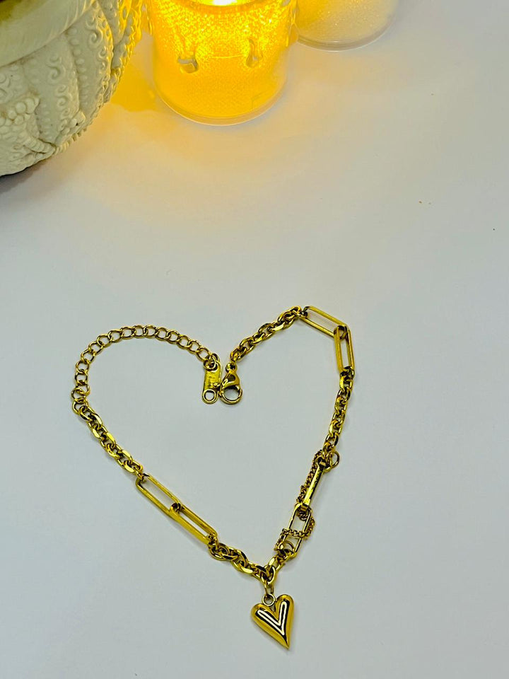 The Golden Heart Charm Necklace is a timeless blend of elegance and modern style. Designed with a sleek gold-plated link chain and a beautifully sculpted heart pendant, this piece adds a touch of luxury to any outfit. The lightweight charm swings gently with every movement, creating a soft, graceful sparkle that catches the eye instantly.
